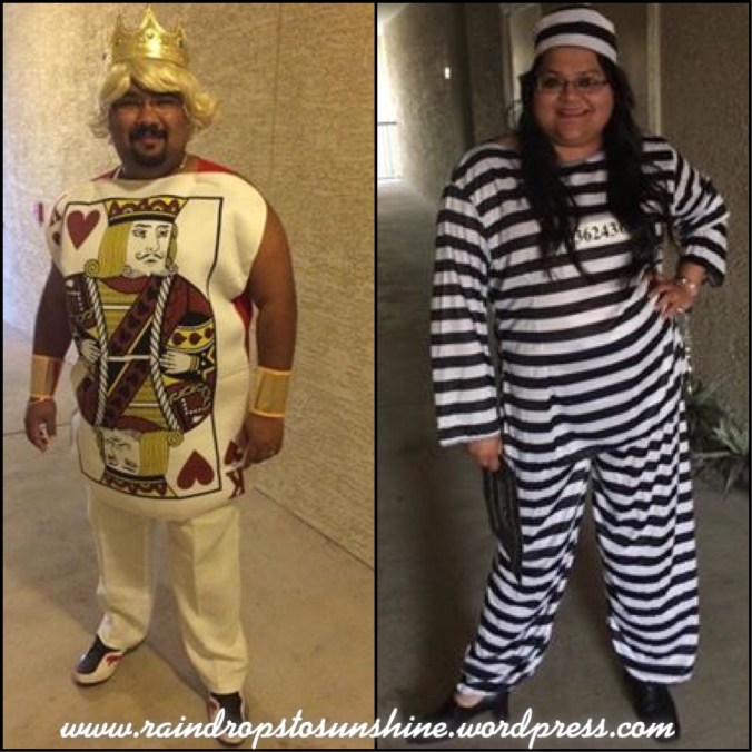 Say hello to the King of Hearts and the Prisoner!! The king of hears costume won my hubby the best costume award!! Both our costumes were from Target.