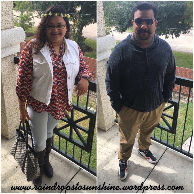 It’s been a while I posted Couple’s fashion and hence today, I am talking about just that, featuring recent looks from our Anniversary celebrations!! Fall Fashion (atleast in Houston) is a mixture of my summer wardrobe along with some jackets and scarves needed here n there.
