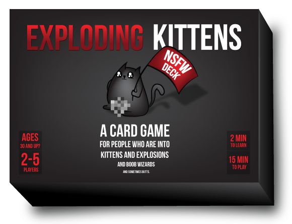 This one is a fairly recent board game having debuted in 2015. Basically it’s a card game, where you draw cards until you draw an Exploding Kitten, at which point you explode and lose. A player may play as many or as few cards as they choose during their turn, but must end their turn by drawing a card.