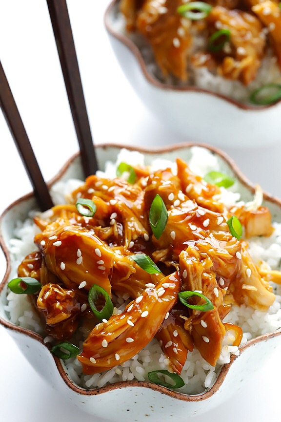 6. Add chicken back to the pan and stir to combine. Serve over hot white rice or brown rice, garnished with fresh green onion and a sprinkle of sesame seeds.