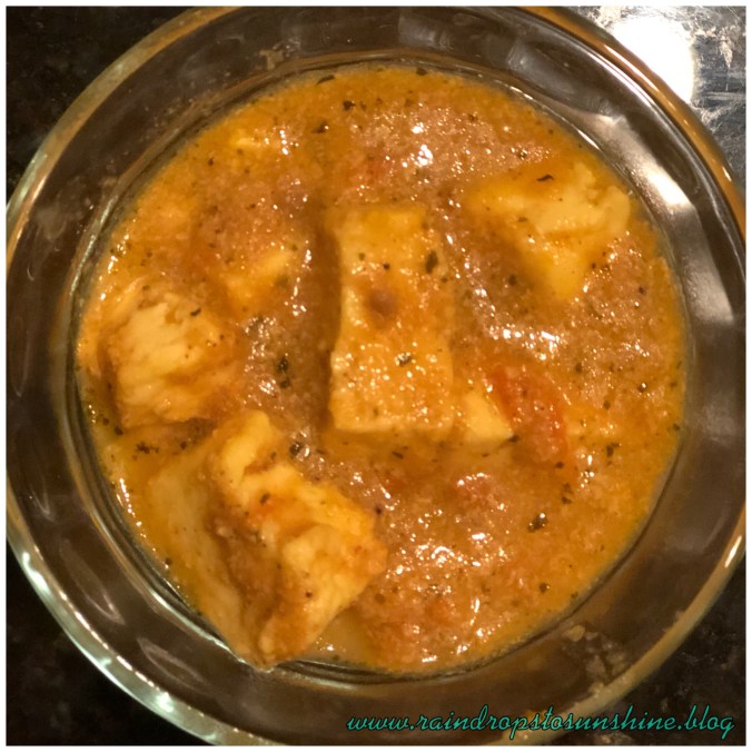 Butter Paneer Masala is a slightly sweet creamy dish of Paneer. This dish can be made fancy restaurant style or like I do, a quick fix on the days you are starving already, thanks to keeping a Vrat!! In my recipe, the flavors are more in line with home style than restaurant style recipe as I have also made it healthy by skipping the cream and using skim milk instead as well as skipping the cashew nuts.