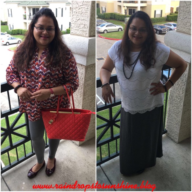 Flowy tops, maxi-dresses, skirts are key! It helps airing things out 😉 But be careful on a windy day! Haha!!